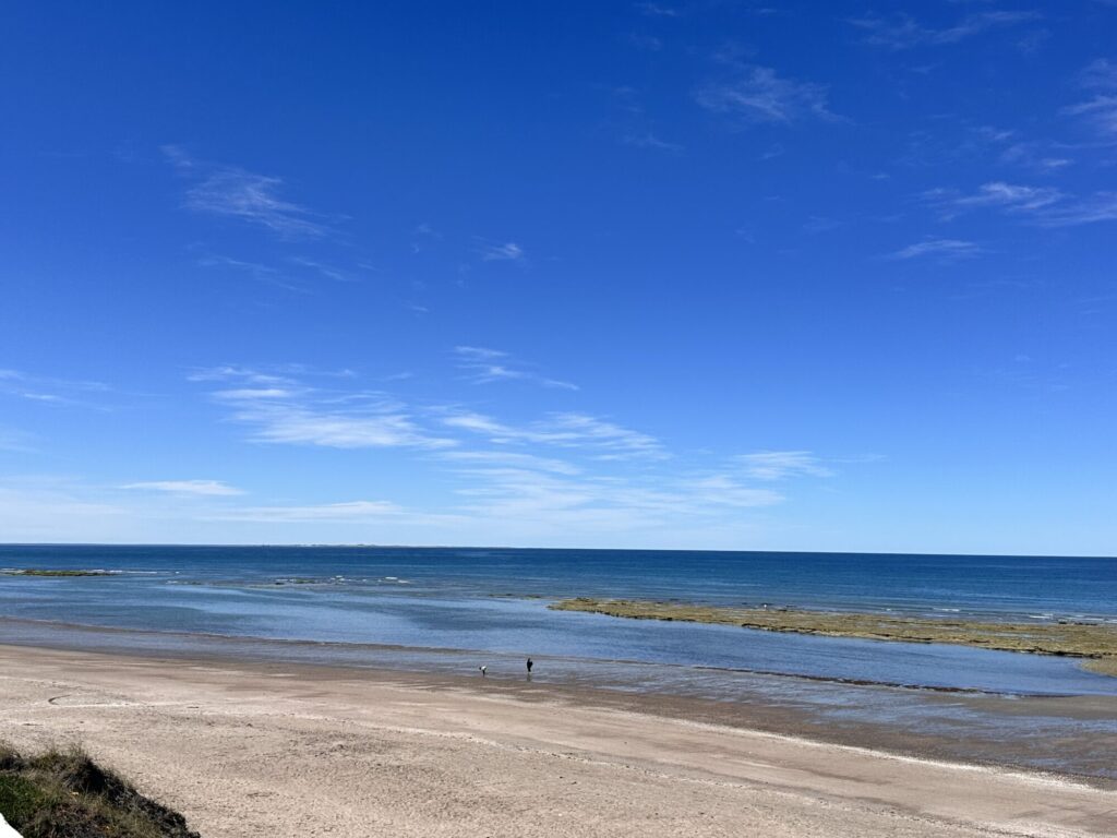 今日もいい天気。ベンチに座ってしばらくボケー。なんかここの海は落ち着くな。