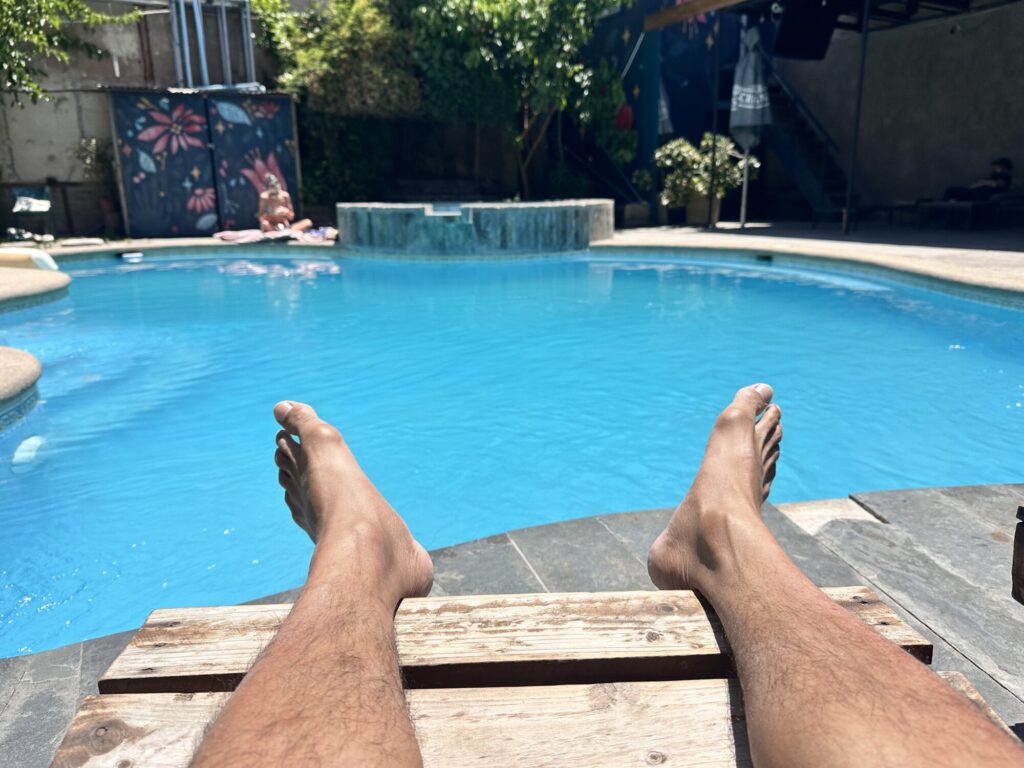 ここらは1番暖かくなるのは16時ごろで、かなり暖かくなったからプールにも入ってプカプカ。念願のプール!