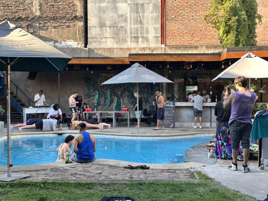 夕方スーパーから帰ってきてちょっと泳ごうかなと思ってたんだけど、なんかDJまで呼んでプールサイドでパーティー始まってた。