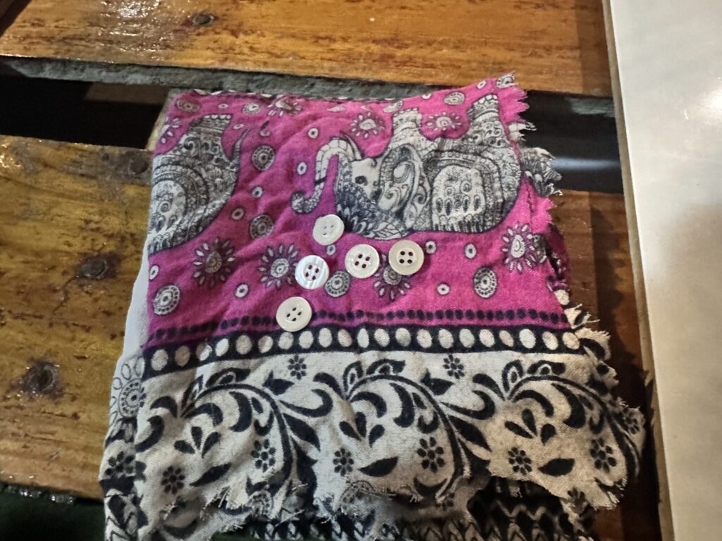 ボタンは何かで使えるかもしれないから全部取って、生地も何かに穴空いた時の塞ぐようにちょっと切って取っておいた。