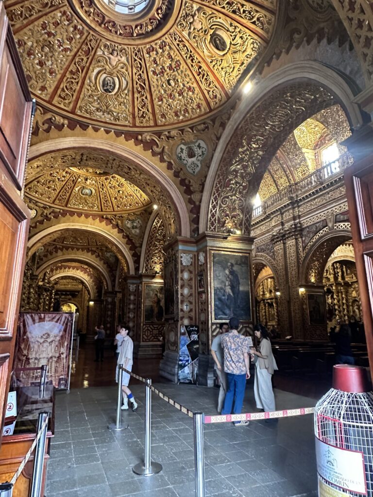 礼拝堂内は写真禁止だったから写真はないんだけど、キリスト像も天井も壁も柱も、全てに細かい彫刻が施されて金の塗装。