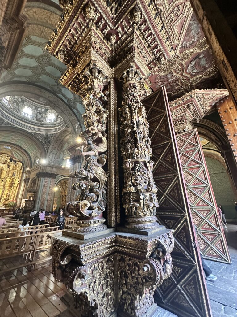 入り口近くの柱の彫刻がメッチャ綺麗!