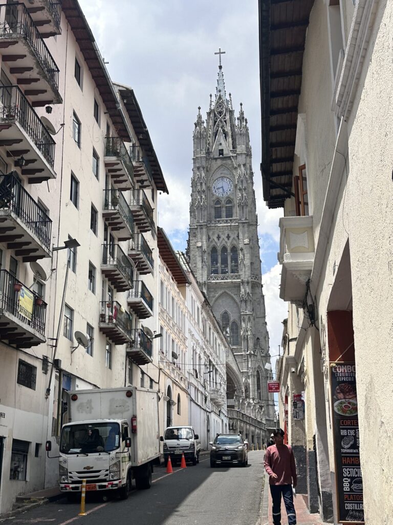 これはキトの新市街側。街の様子も、この教会の上部の細かい作りも見れてメッチャいい!