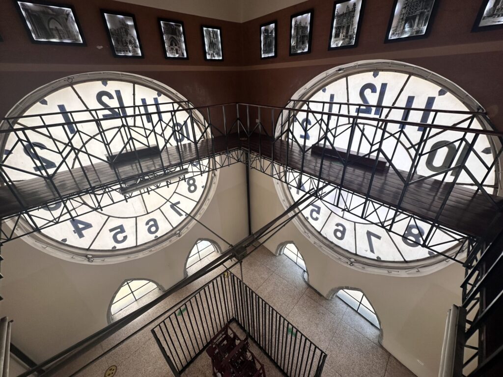 そこから細い螺旋階段を登ると、時計台の中へ。