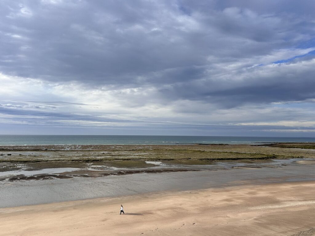 やーいいなぁ!かなり遠くまで潮引いてるな。ビーチに降りて散歩。