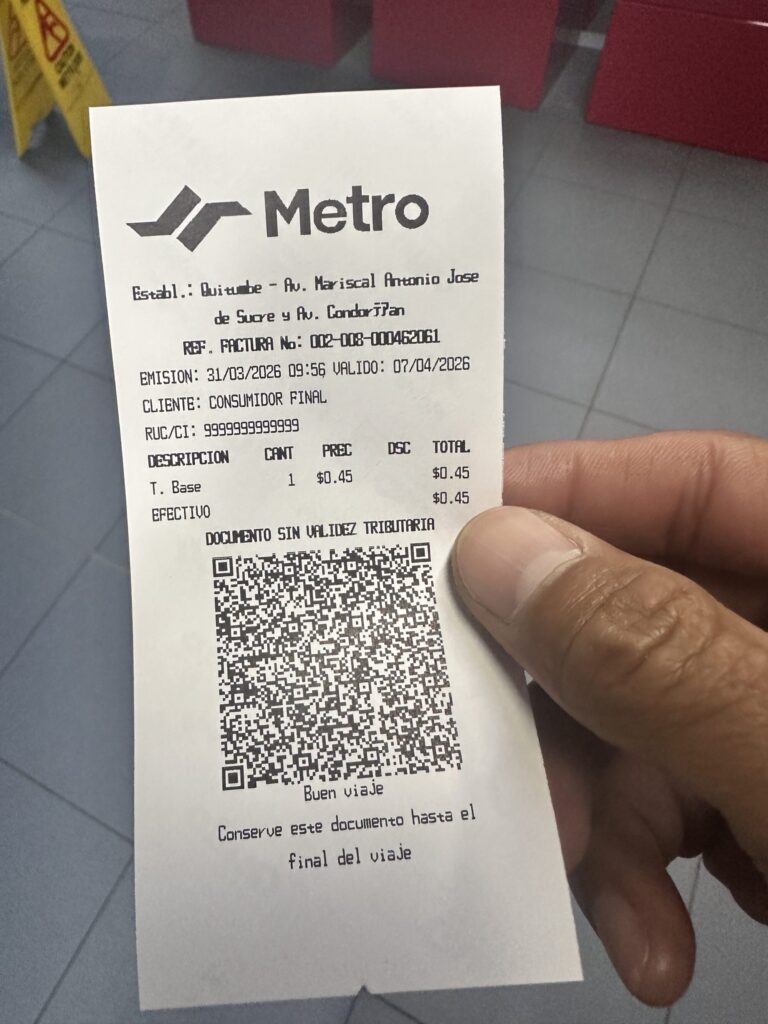 バスチケットは昨日バスターミナル行って購入。バス会社『TURISMO ORIENTAL』、23:15にCuenca(クエンカ)発、キト到着は翌朝。