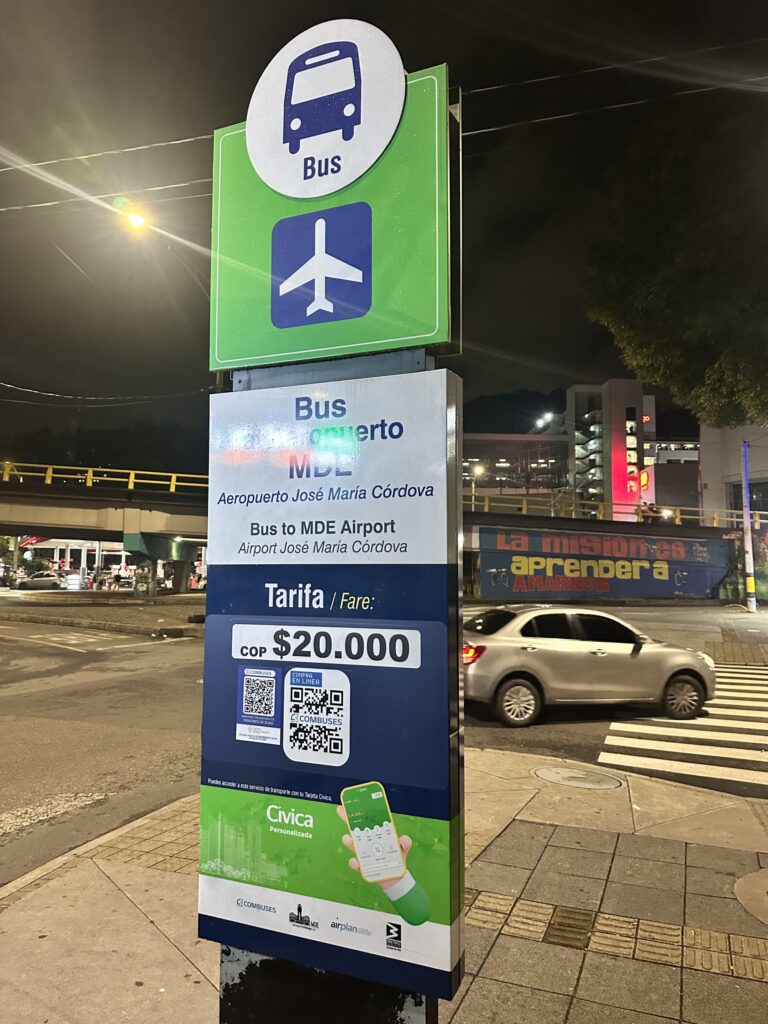 バス乗り場はGoogleマップの『Buses para el aeropuerto Jose Maria Córdoba』ってところで、宿からはメトロ2本乗り継いで
