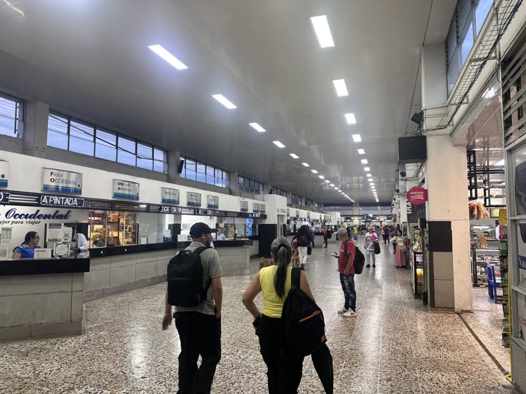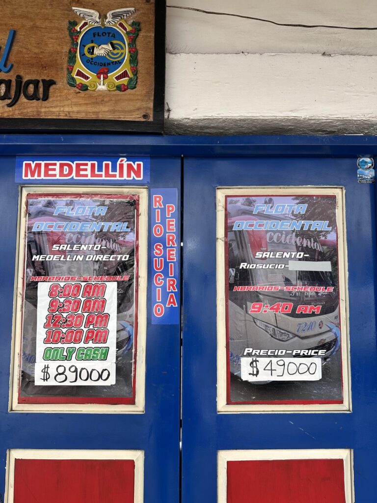 このメデジン行きのバスもアルメニアやペレイラ行きのローカルバスも、Googleマップの『Salento Bus Station』ってところから出てる。