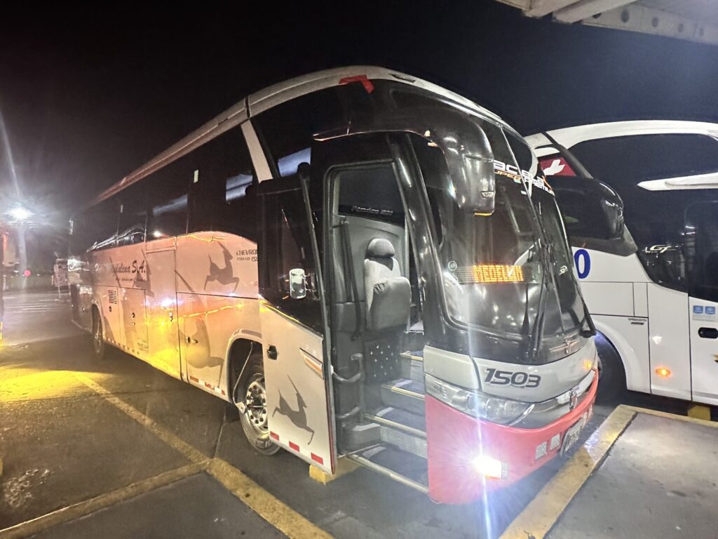 今日のこの時間以降のバスは21:00発3:30メデジン着か、0:00発6:30着かってことで迷ったんだけど、21:00発のバスにした。