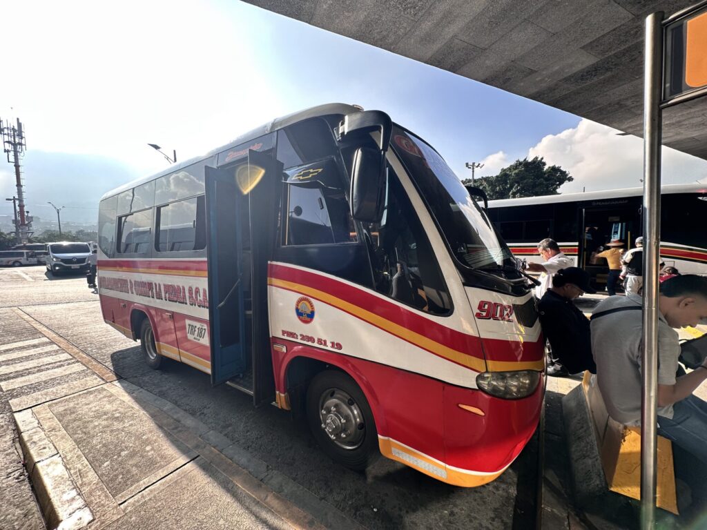 メデジン寄りから乗れるから値段はちょっと安くなるんだけど、アルメニアからの方がバスの選択肢が多そうだったからね。